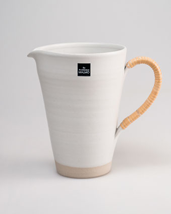 Det föll sig naturligt att använda rotting som grepp på karaffer och skålar.